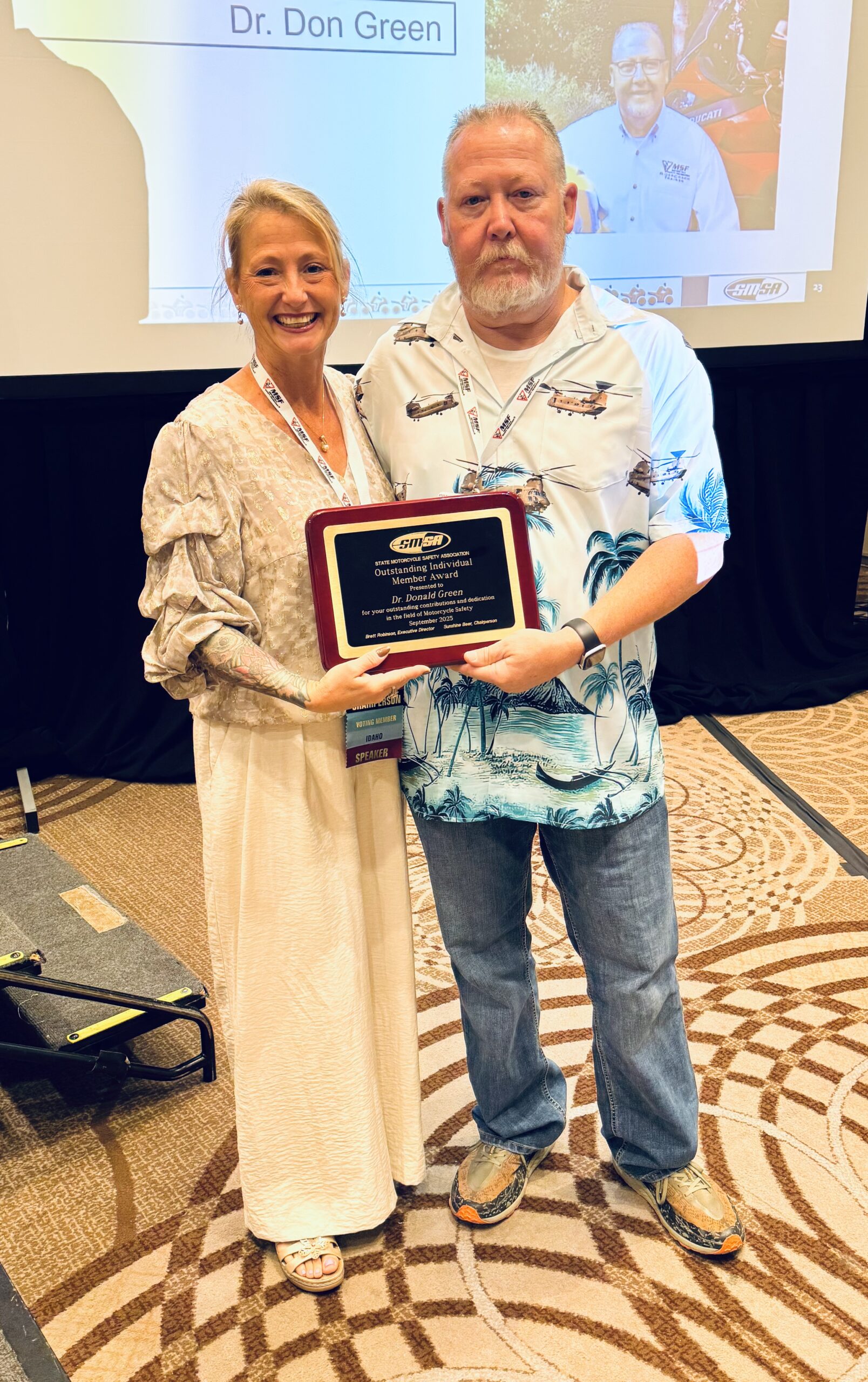 The SMSA Outstanding Individual Member Award recognizes individuals who through their dedication, commitment and contribution to motorcycle safety have made a positive impact on motorcycle safety at the national, state or local level.